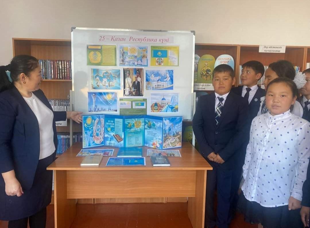 "Алғазы орта мектебі" КММ де 25 қазан Республика күніне орай " Отаным бақыт - ордасы" атты кітап көрмесі ұйымдастырылды.Көрменің мақсаты: Оқушыларды өз Отанын сүюге, Қазақстанда тұратынын мақтаныш етуге, туған халқының тілін, мәдениетін, салт- дәстүрін қастерлейтін саналы да парасатты азаматтар тәрбиелеу.Кітапханашы А.Аскеева оқушыларды кітап көрмесімен таныстырып, Еліміздің Отан болып қалыптасуында халқымыздың даналығын , қайтпас қайсарлығын , Қазақстан халқының достығын, төзімділігін, жеткен жетістігін , ұлттық құндылықтарын насихаттады.