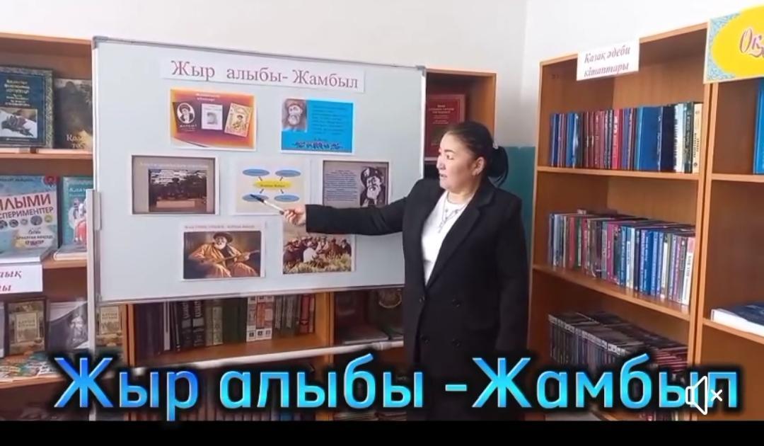 "Алғазы орта мектебі"КММ де   мектеп кітапханашысы  А.Аскеева оқушылармен  "Жыр алыбы Жамбылға 175 жыл" толуына орай  Жыр алыбы Жамбылдың ақындық талантын шәкірт жүрегіне ұялату арқылы поэзияны сүю, оны бағалай білуге ұғындыру. Оқушылардың сөйлеу мәдениетін дамыту, сөз өнерін қадірлеп, қастерлей білуге дағдыландыру , ақын өлеңдерін , поэзиясын сүйе білуге үйрету мақсатында дөңгелек үстел өткізді