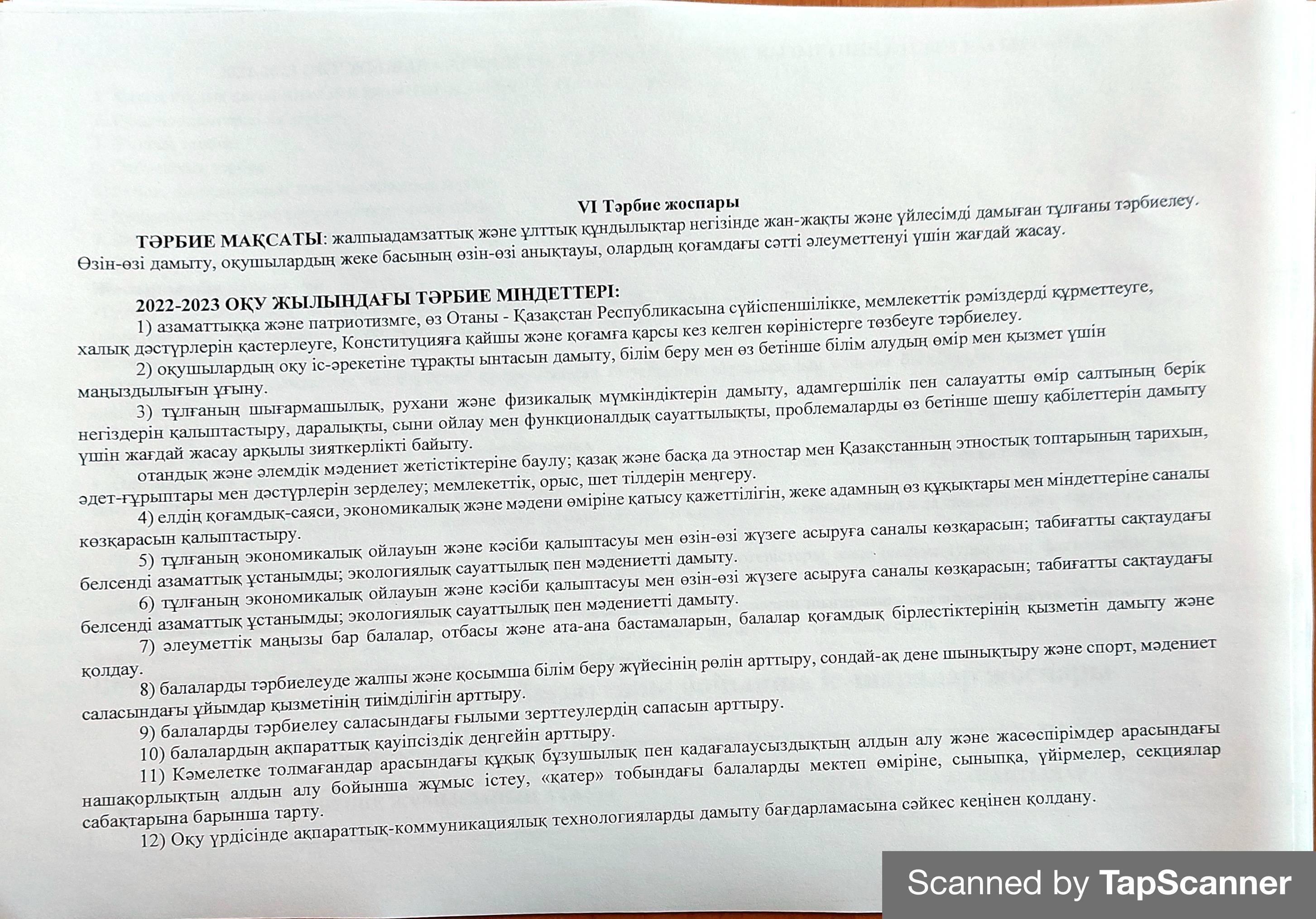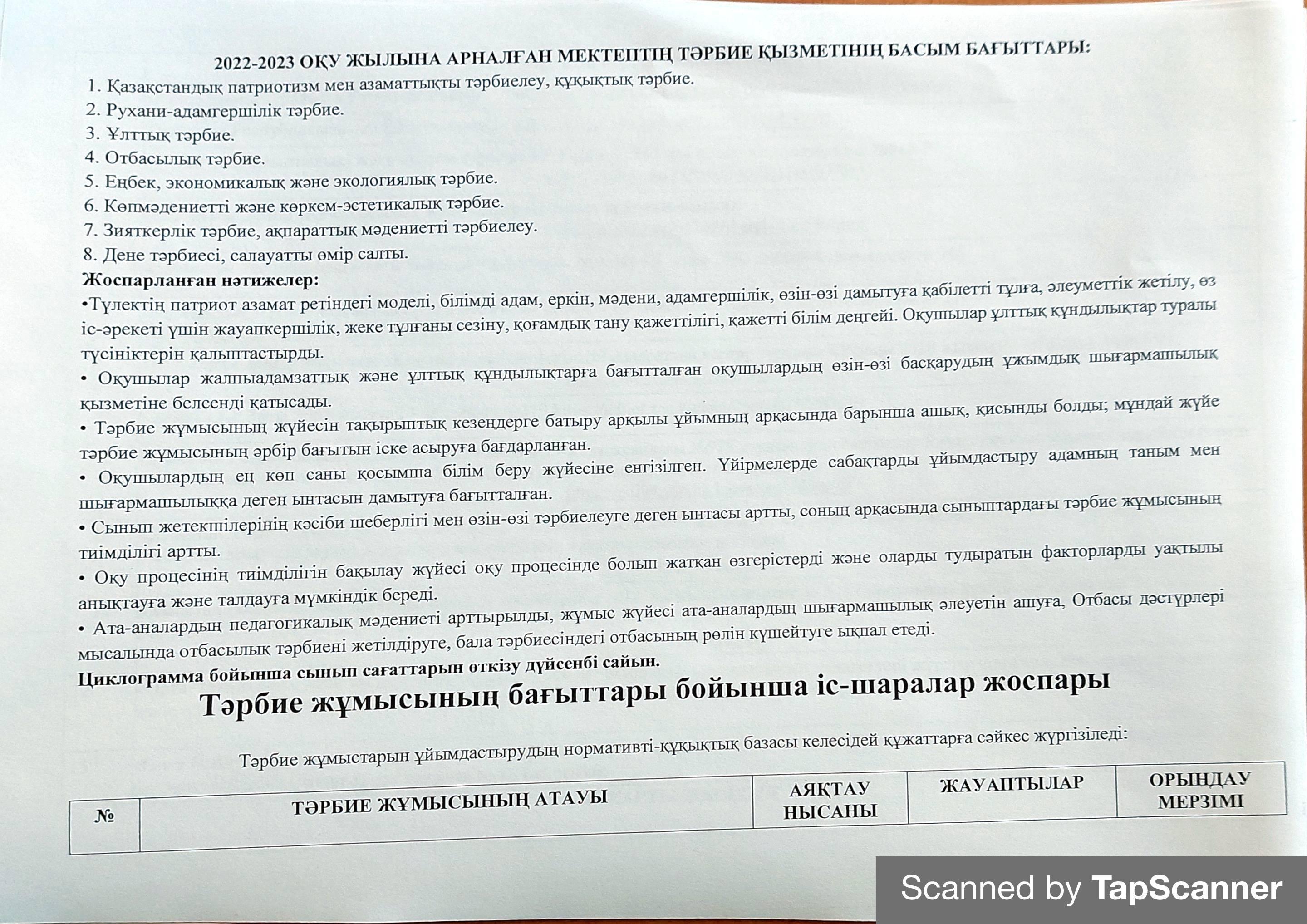 2022-2023 оқу тәрбие жоспары