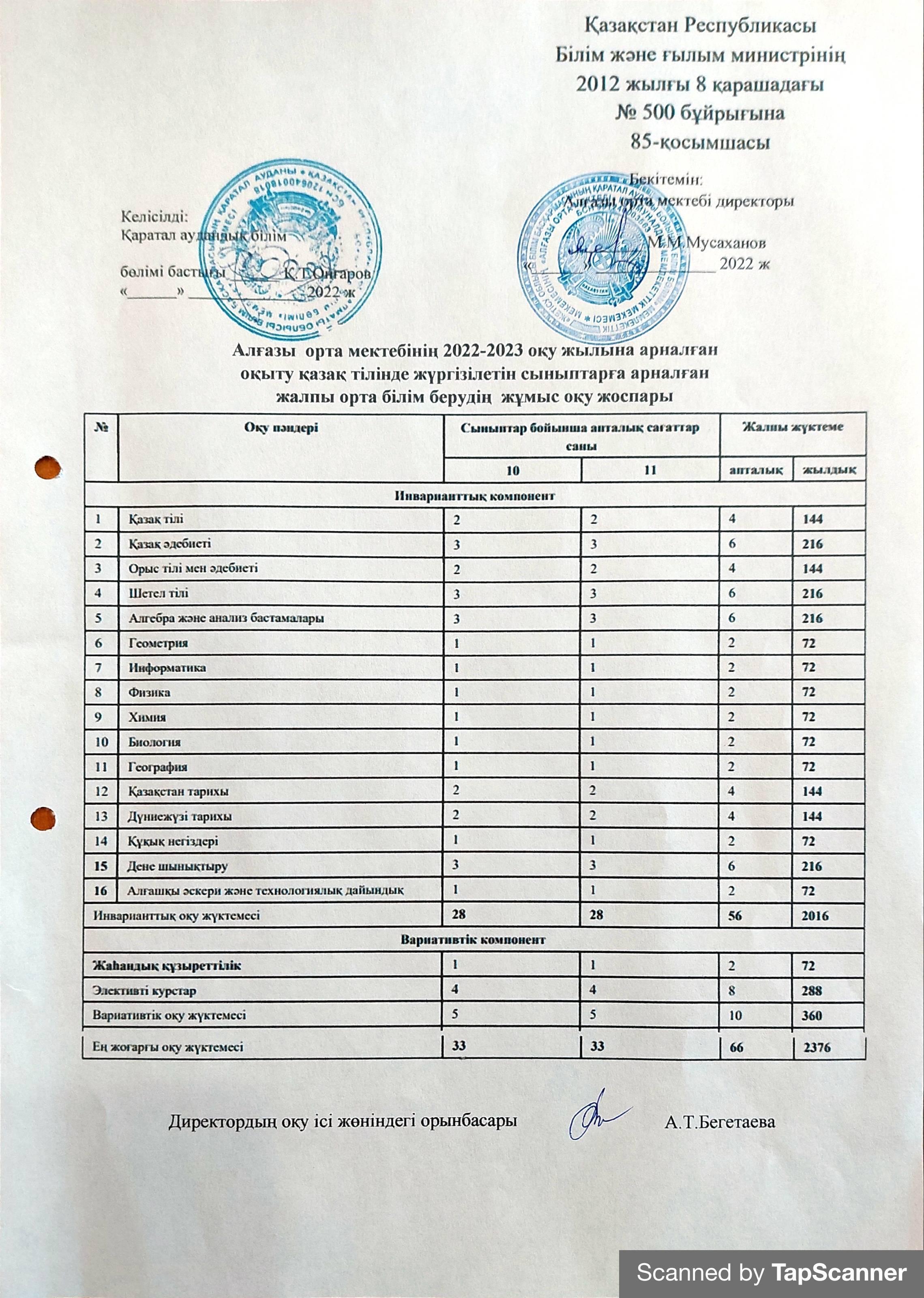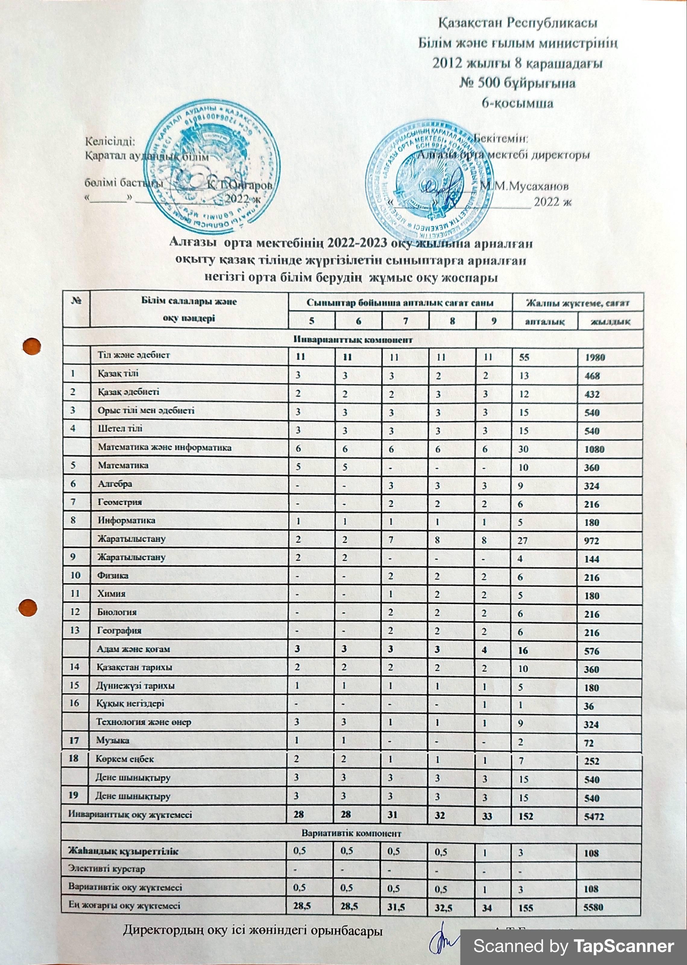 Үлгілік оқу жоспары 2022-2023 » Алғазы орта мектебі
