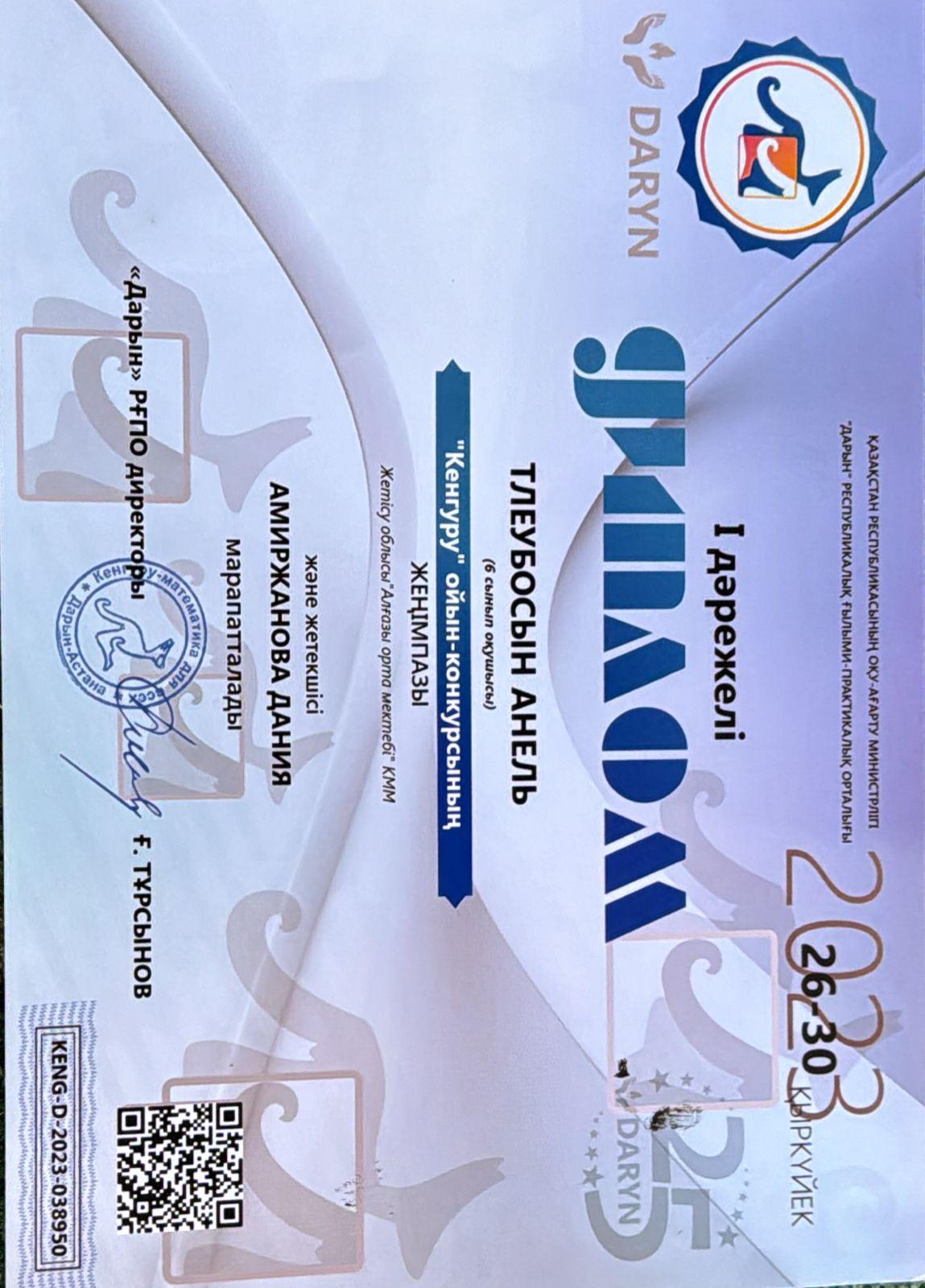 6-сынып оқушысы Тлеубосын Анель » Алғазы орта мектебі