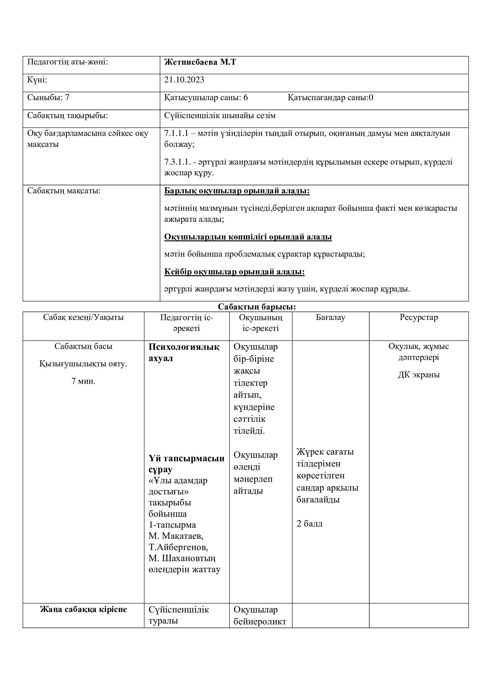 Сүйіспеншілік шынайы сезім 7-сынып