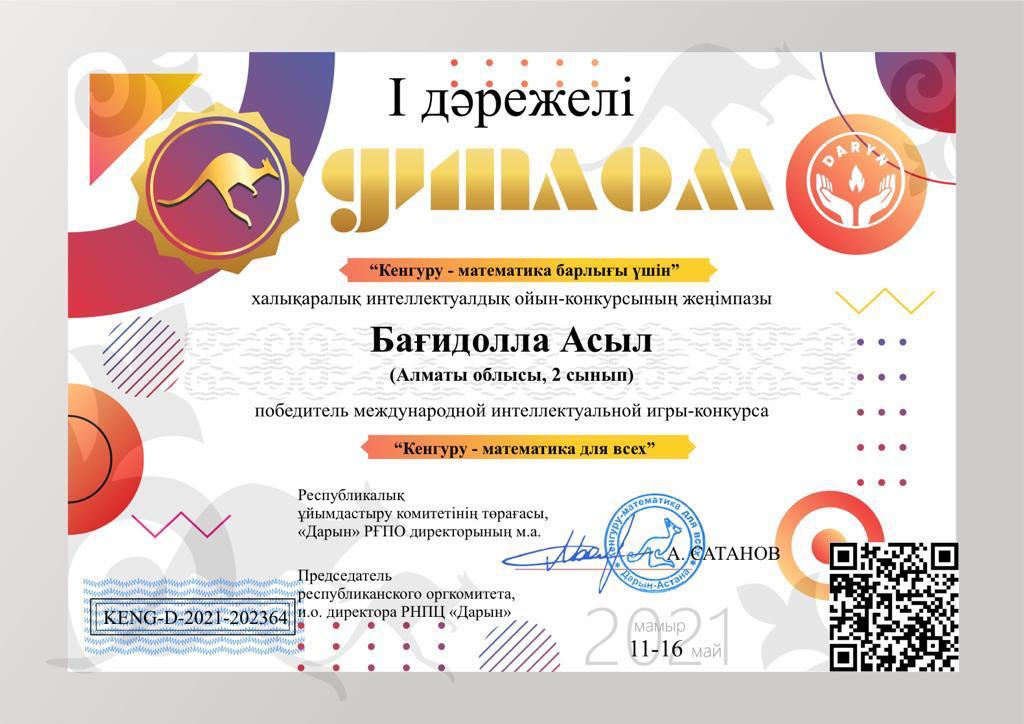 4 сынып оқушысы Бағидолла Асыл » Алғазы орта мектебі