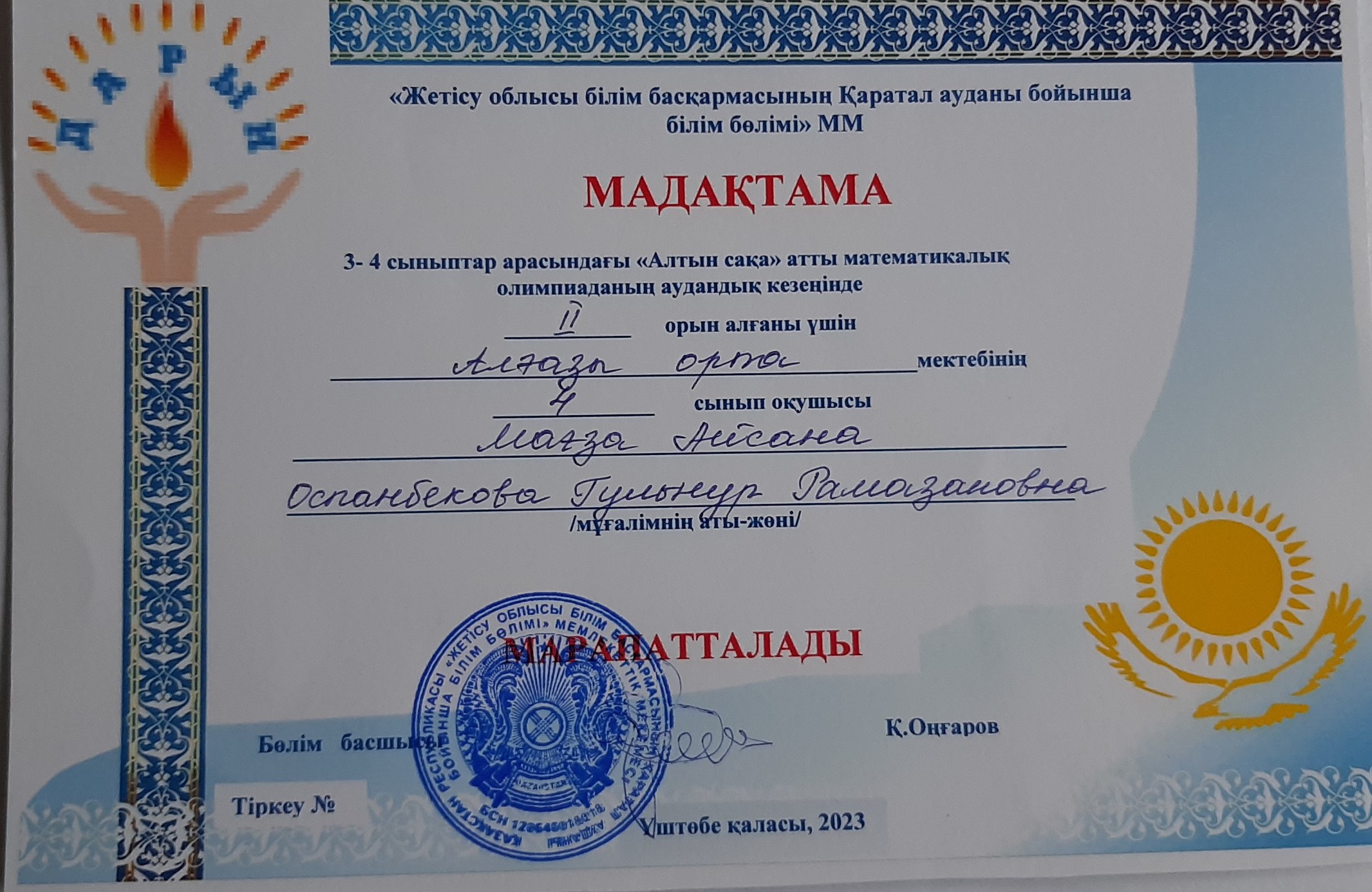 4 сынып оқушысы Мағза Айсана » Алғазы орта мектебі