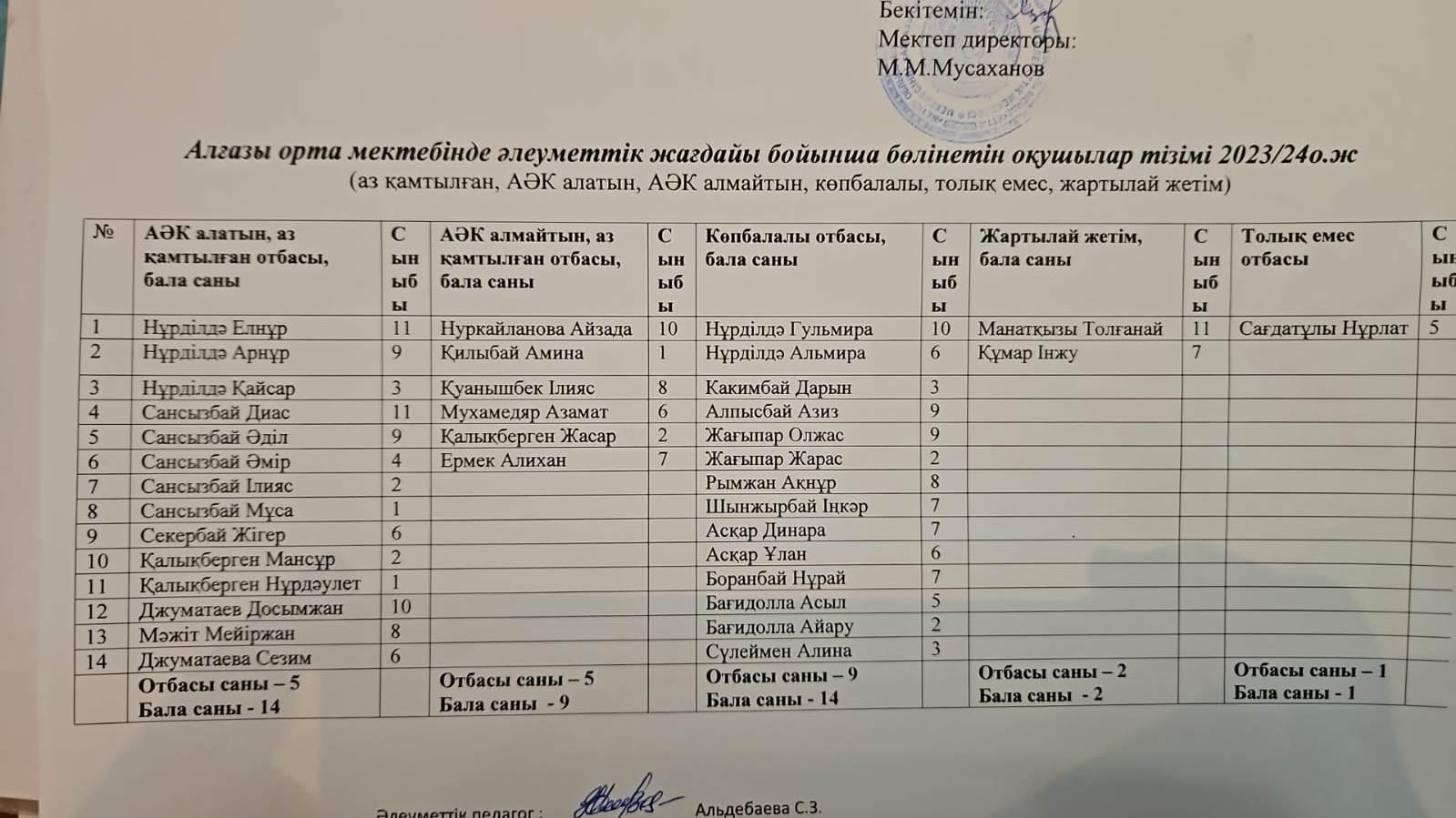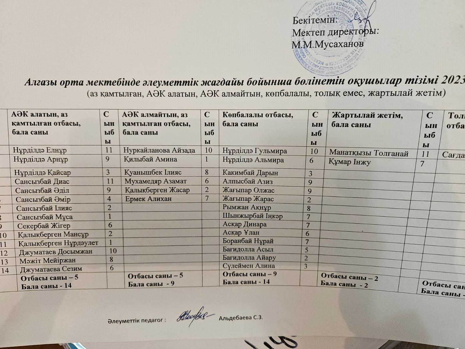 04 сентябрь 2023 0 1 2 3 4 5 Алғазы орта мектебінде әлеуметтік жағдайы бойынша бөлінетін оқушылар тізімі 2023-2024 оқу жылы