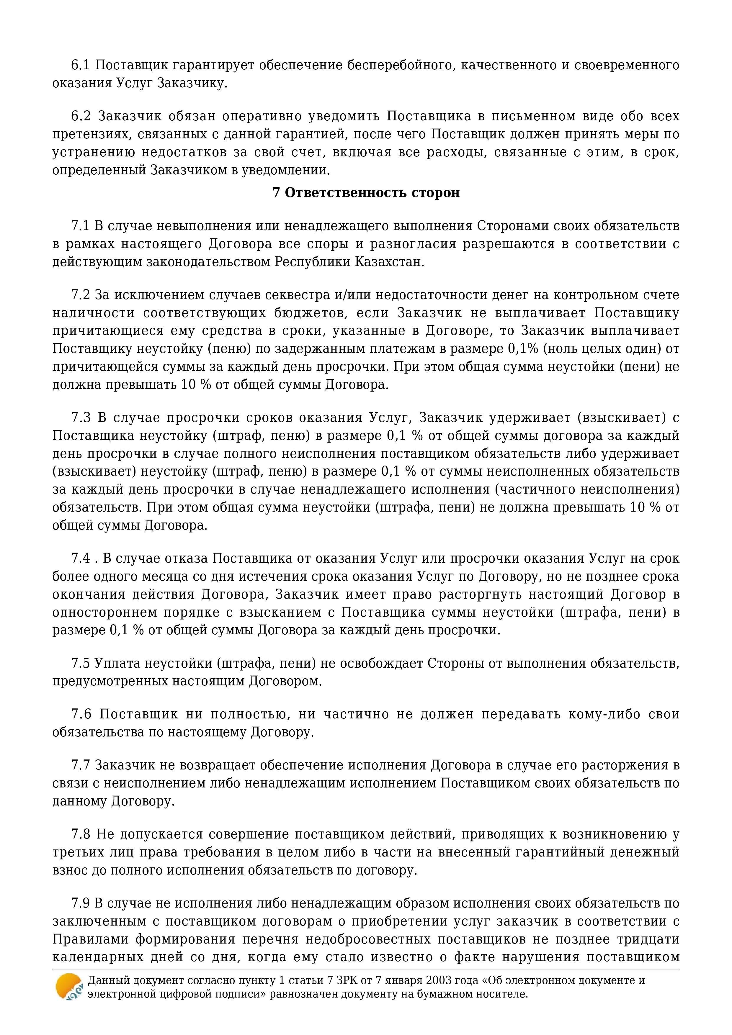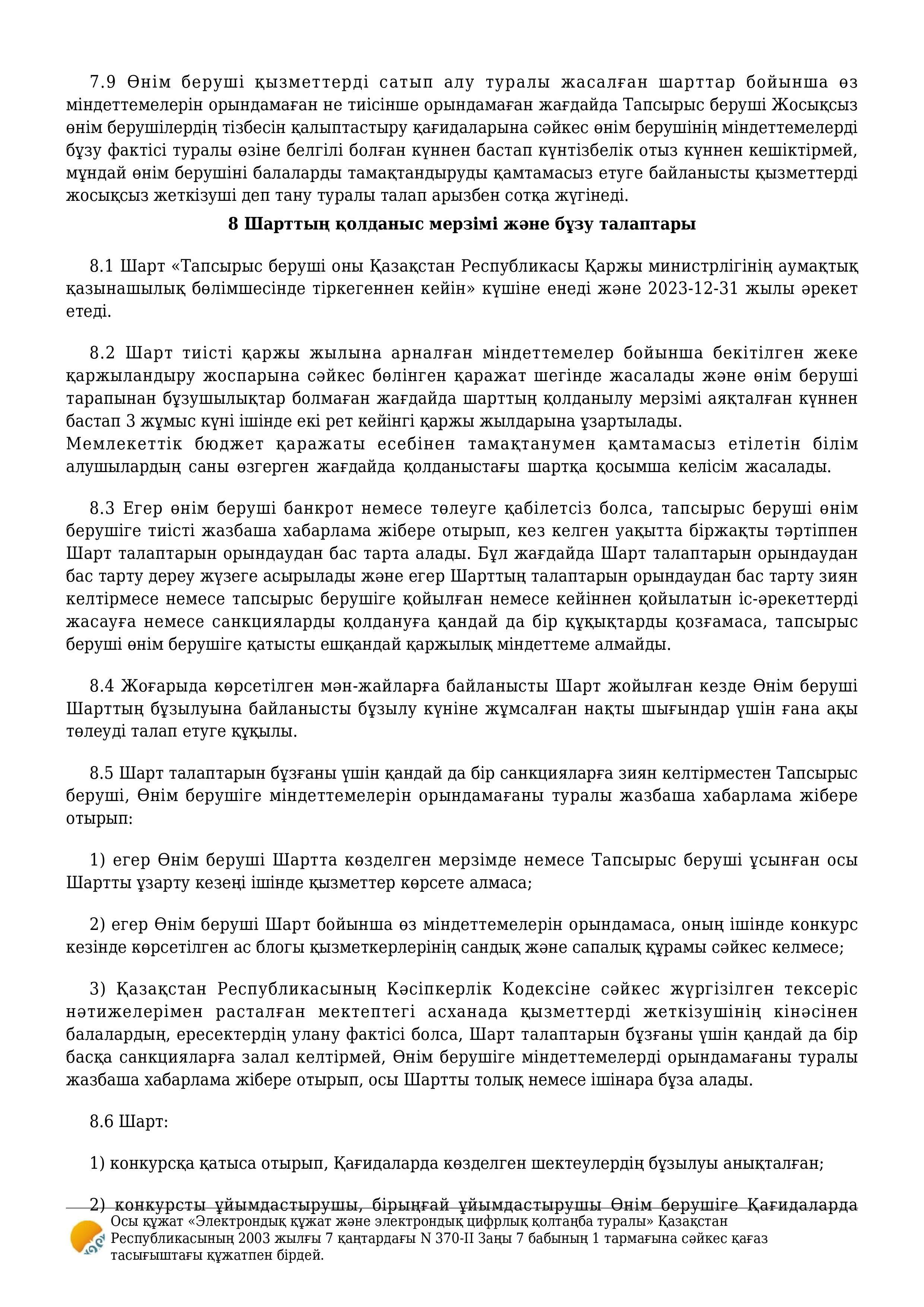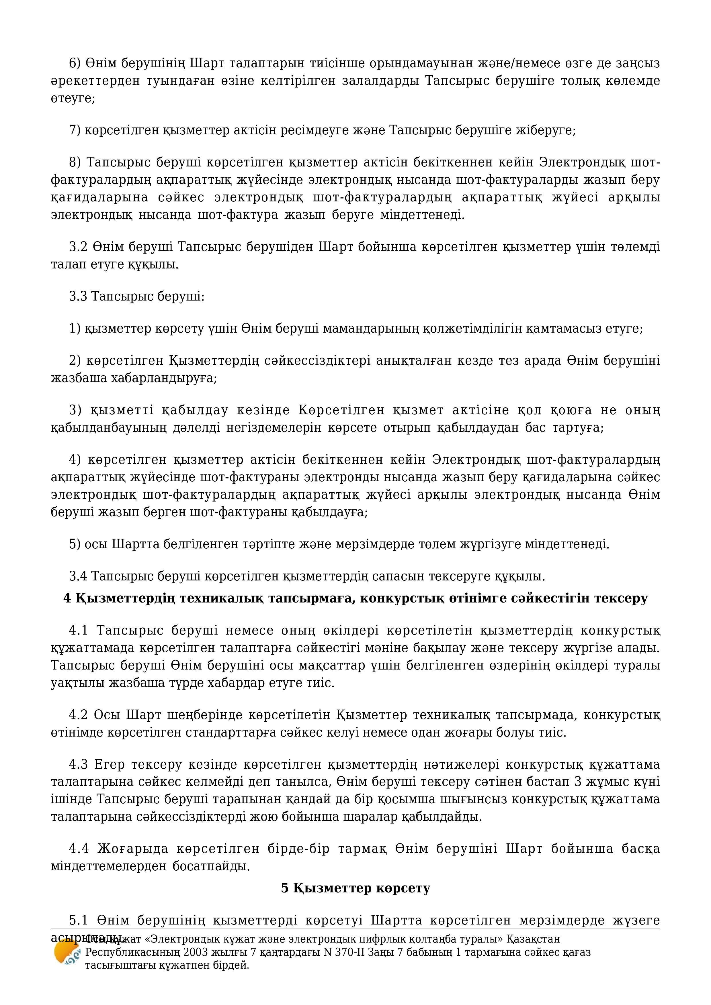 » » » Қызмет көрсету туралы шарт