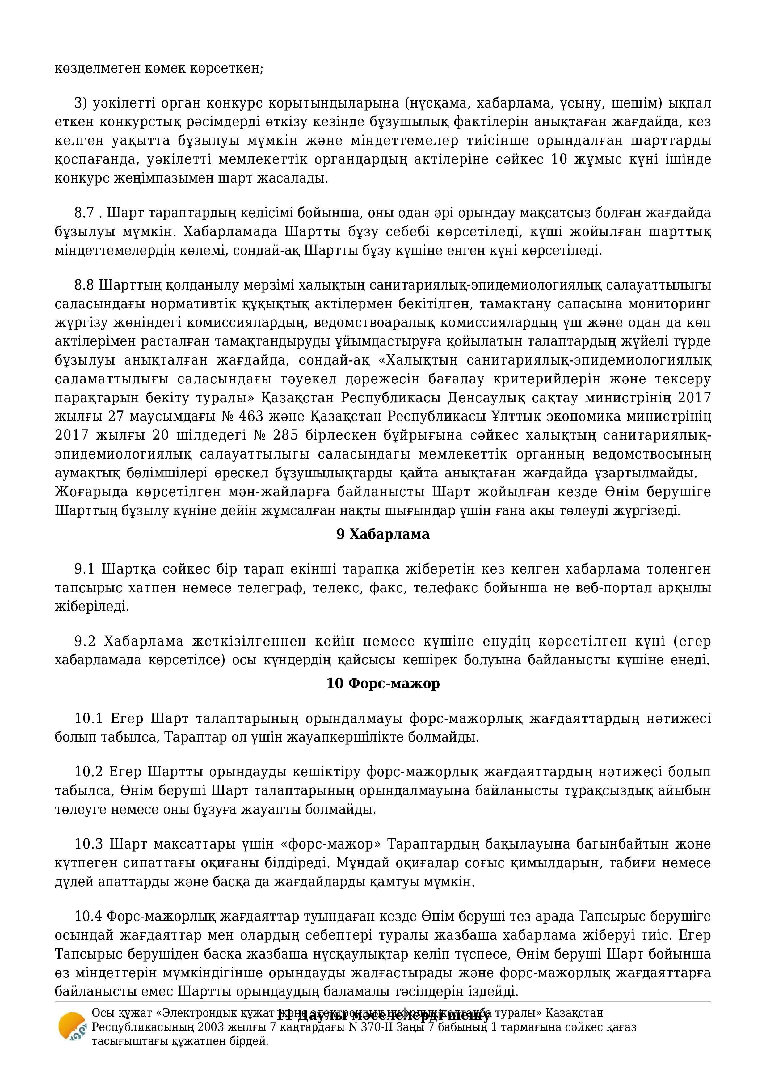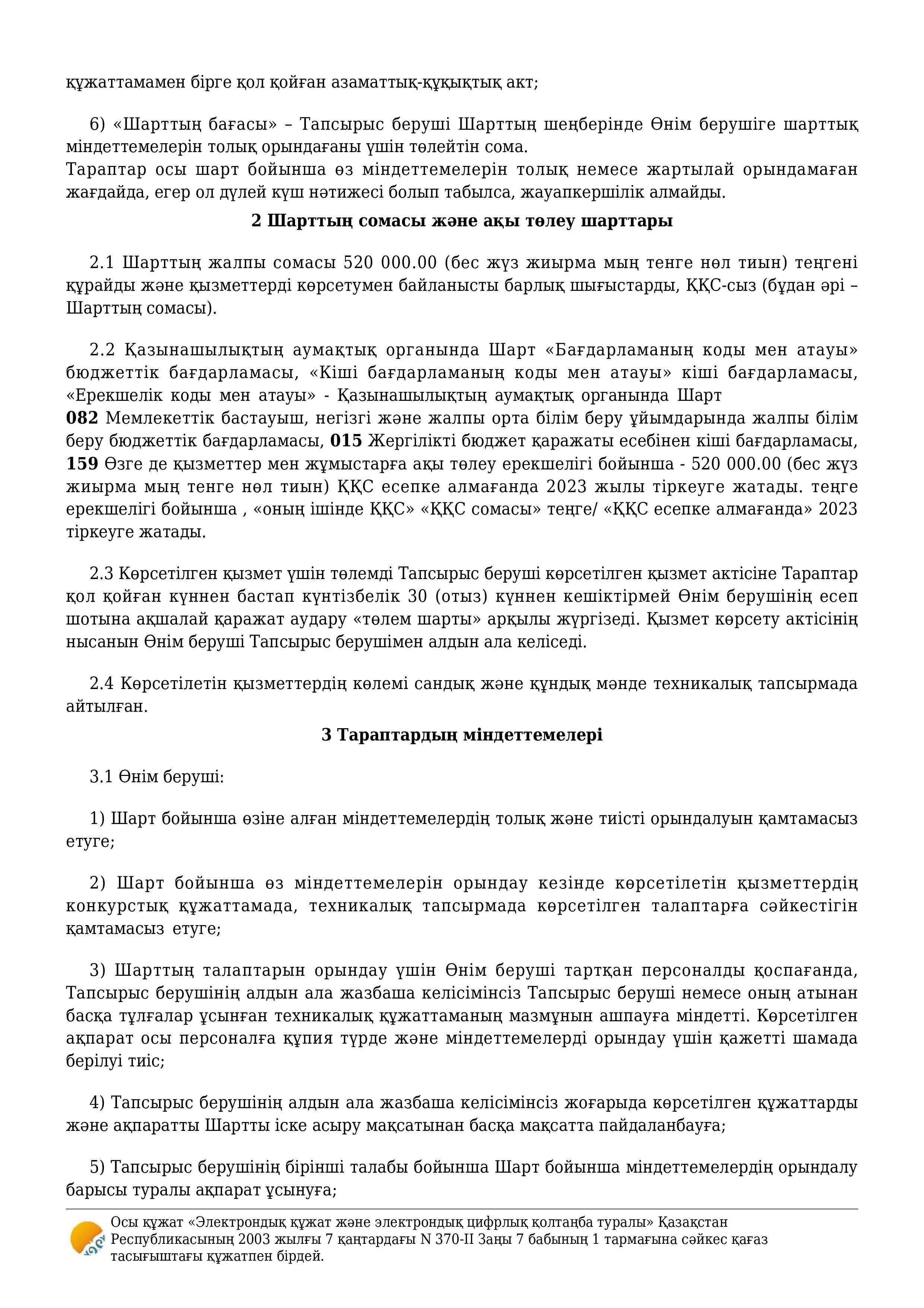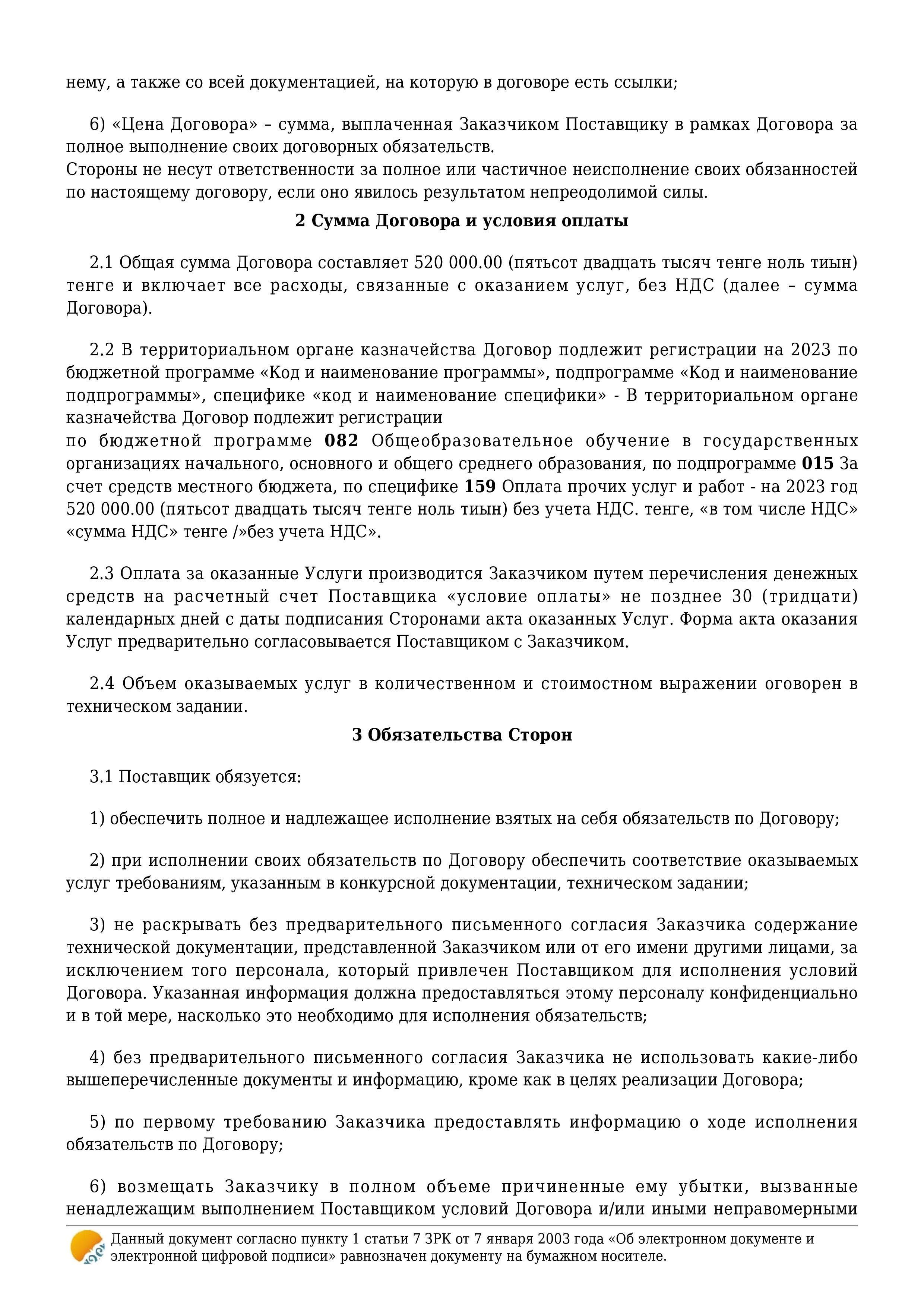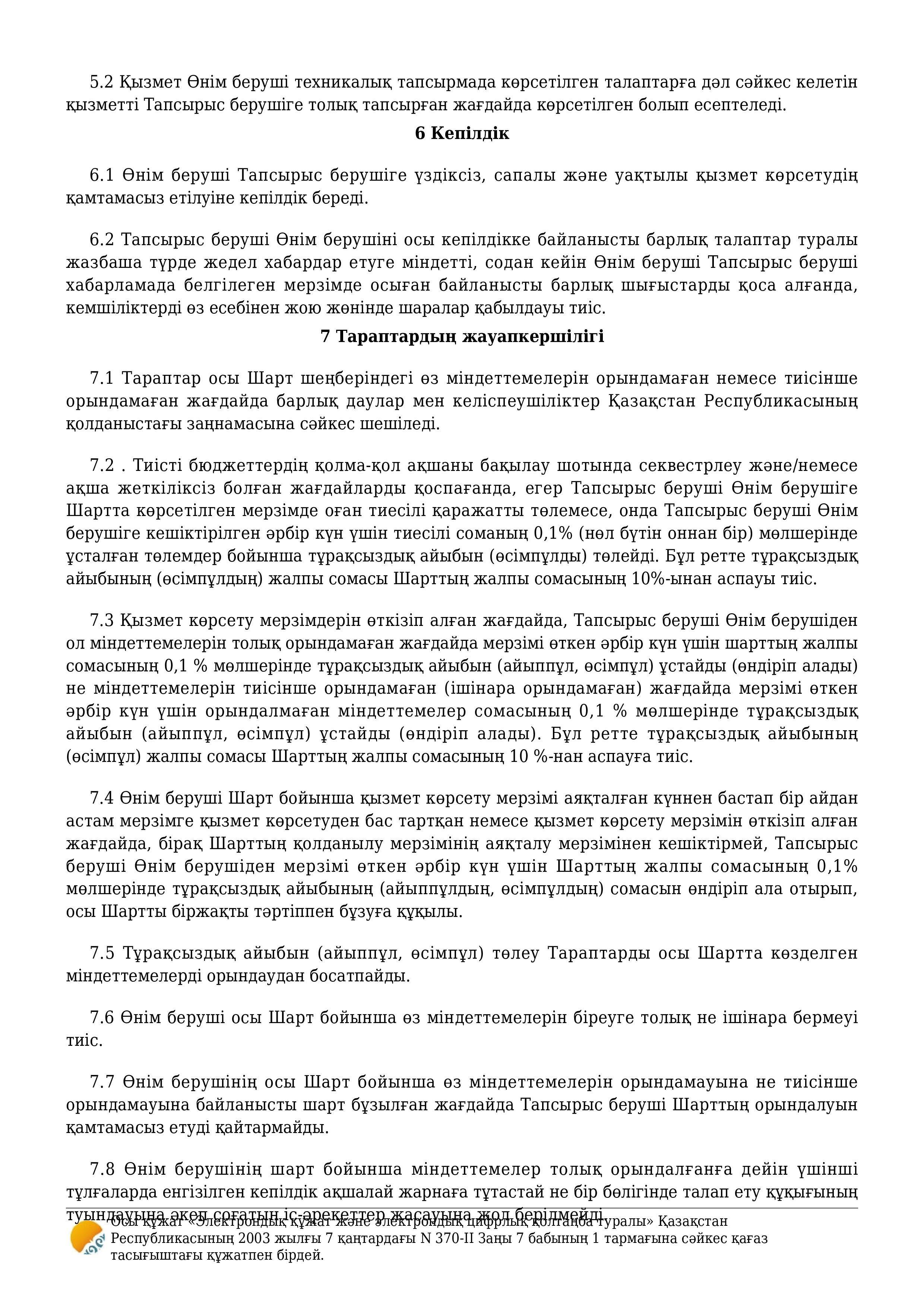 » » » Қызмет көрсету туралы шарт