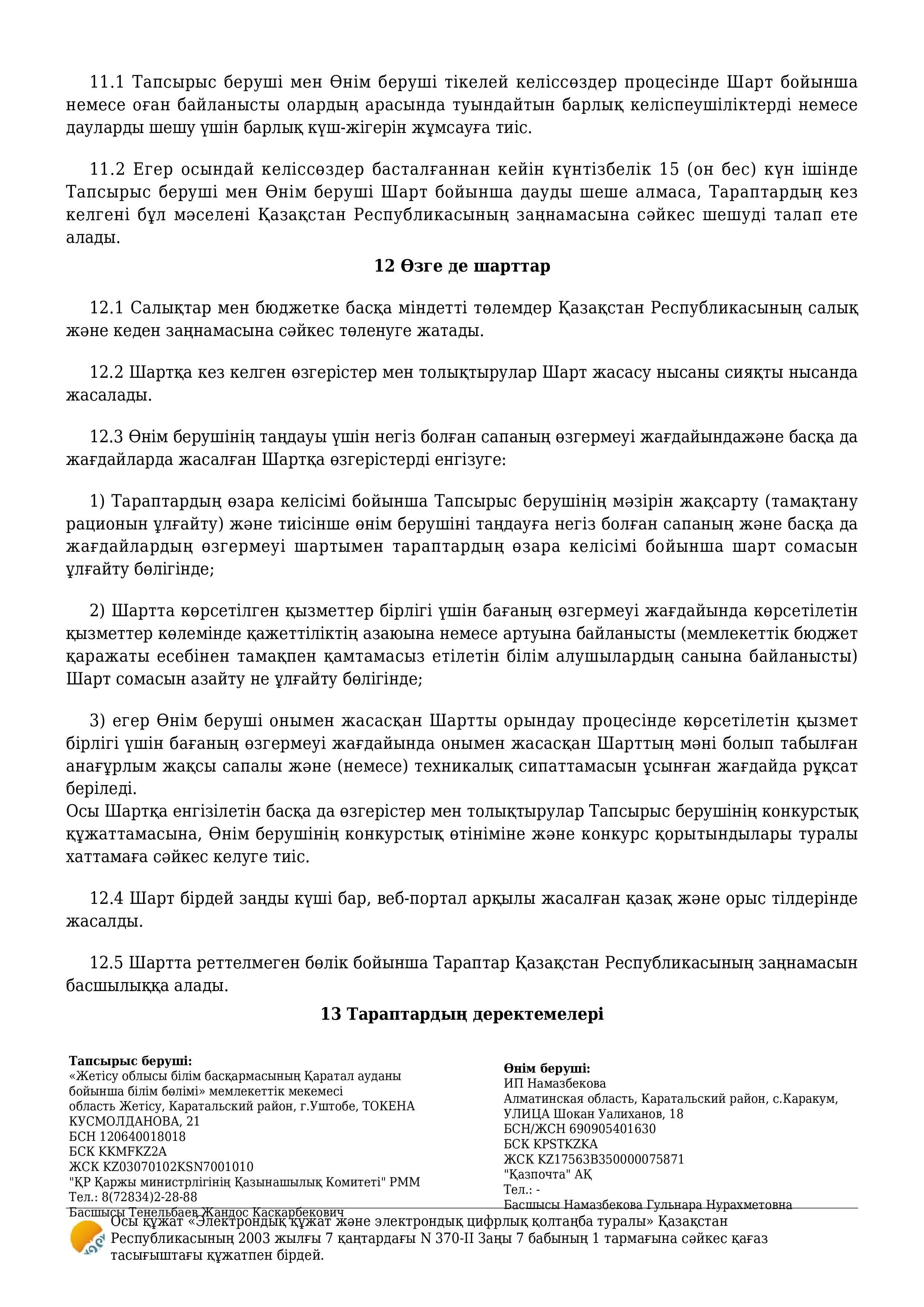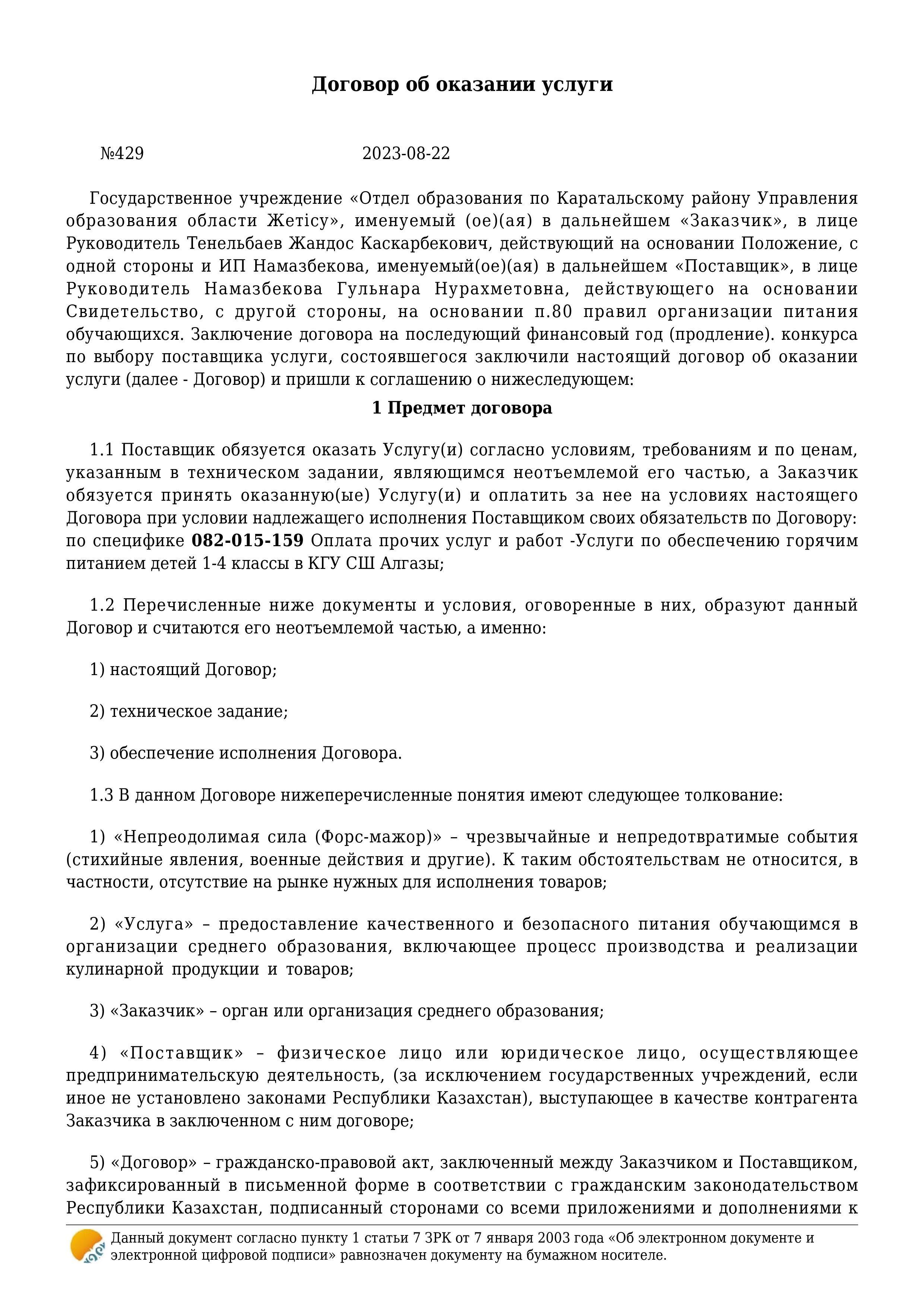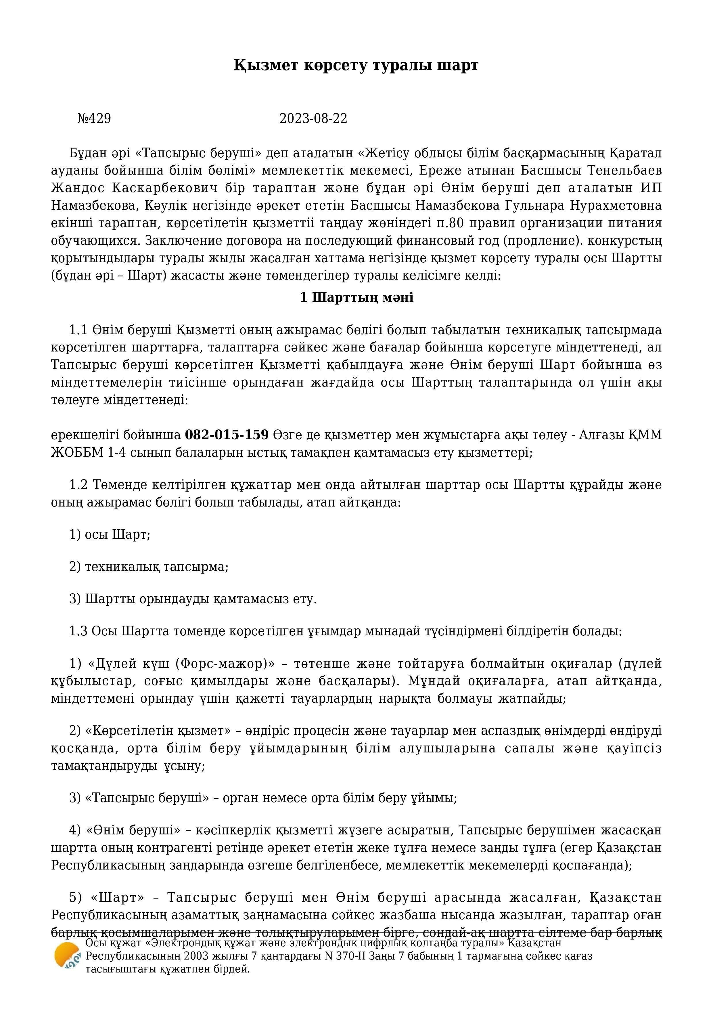Қызмет көрсету туралы шарт » Алғазы орта мектебі