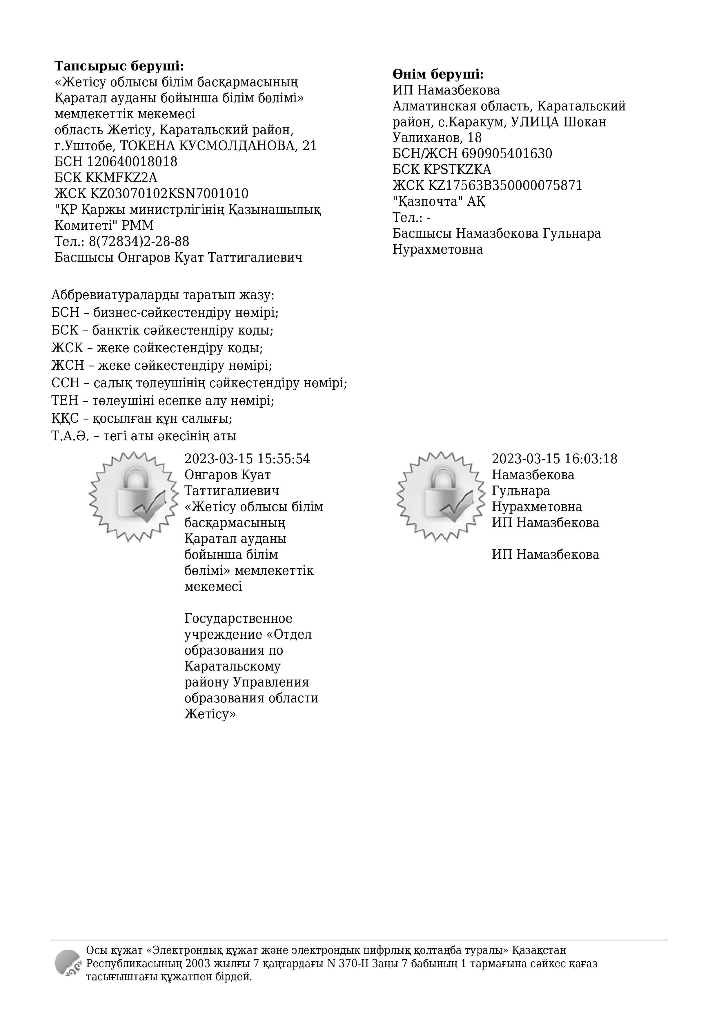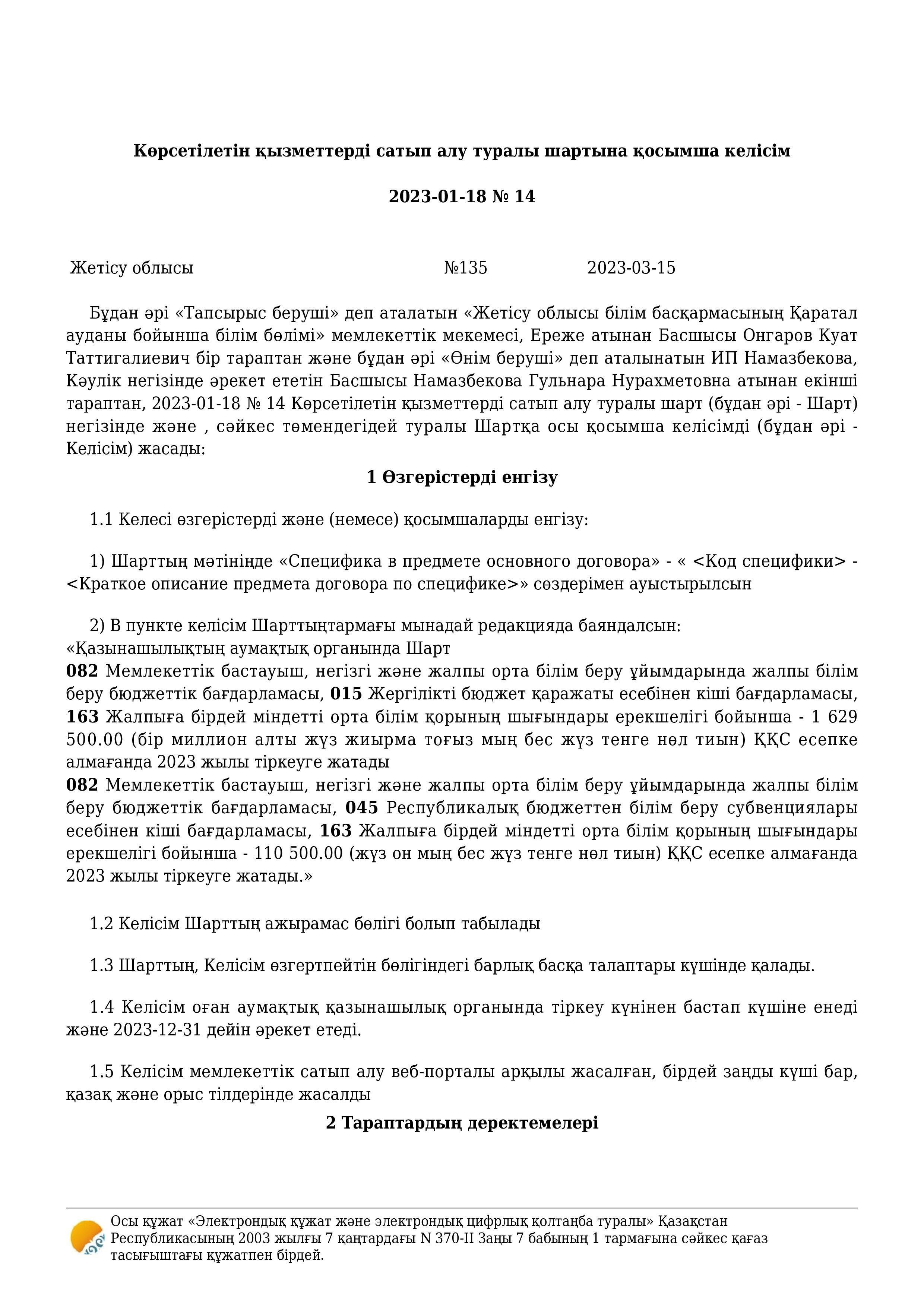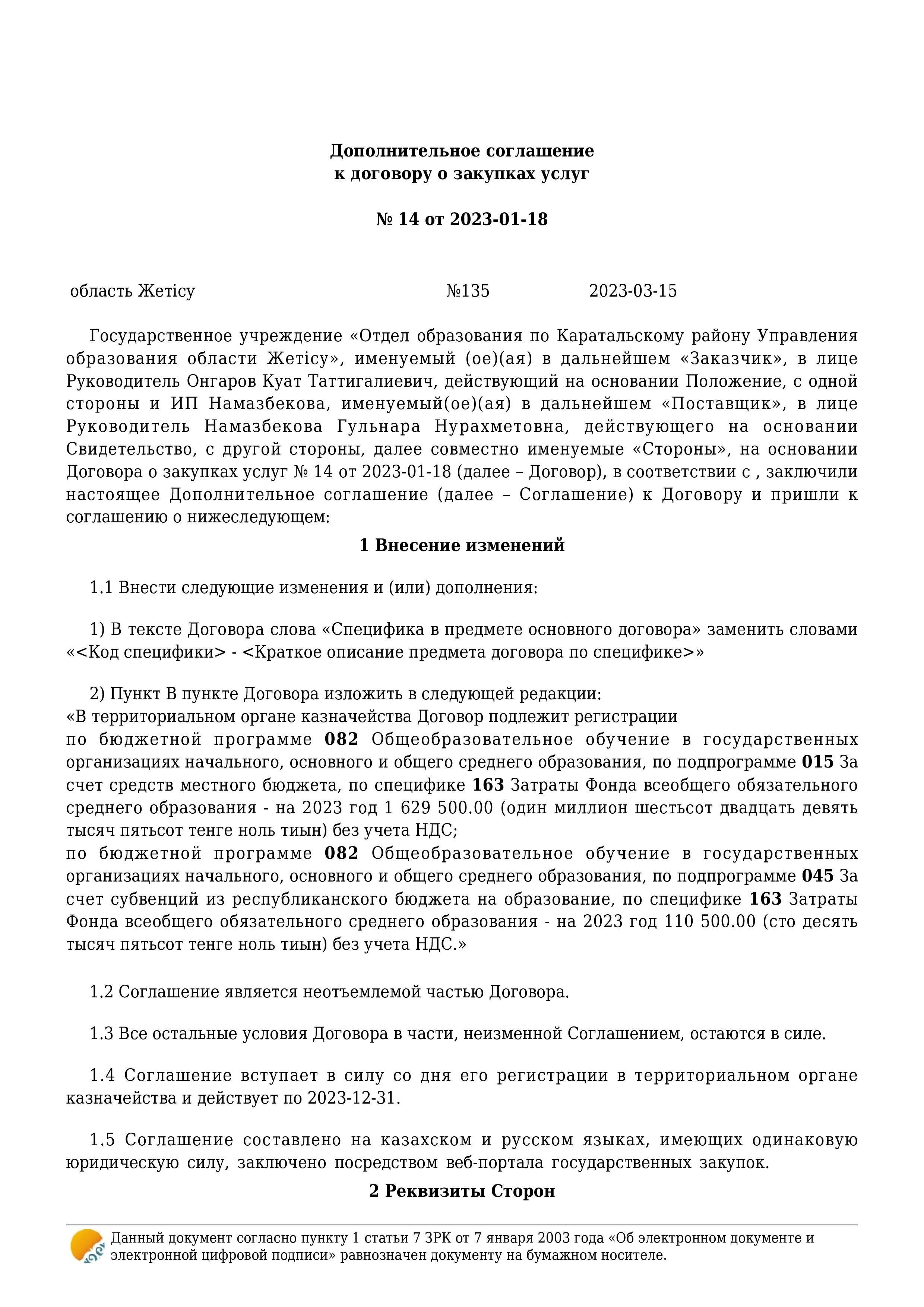 » » » Көрсетілетін қызметтерді сатып алу туралы шартына қосымша келісім