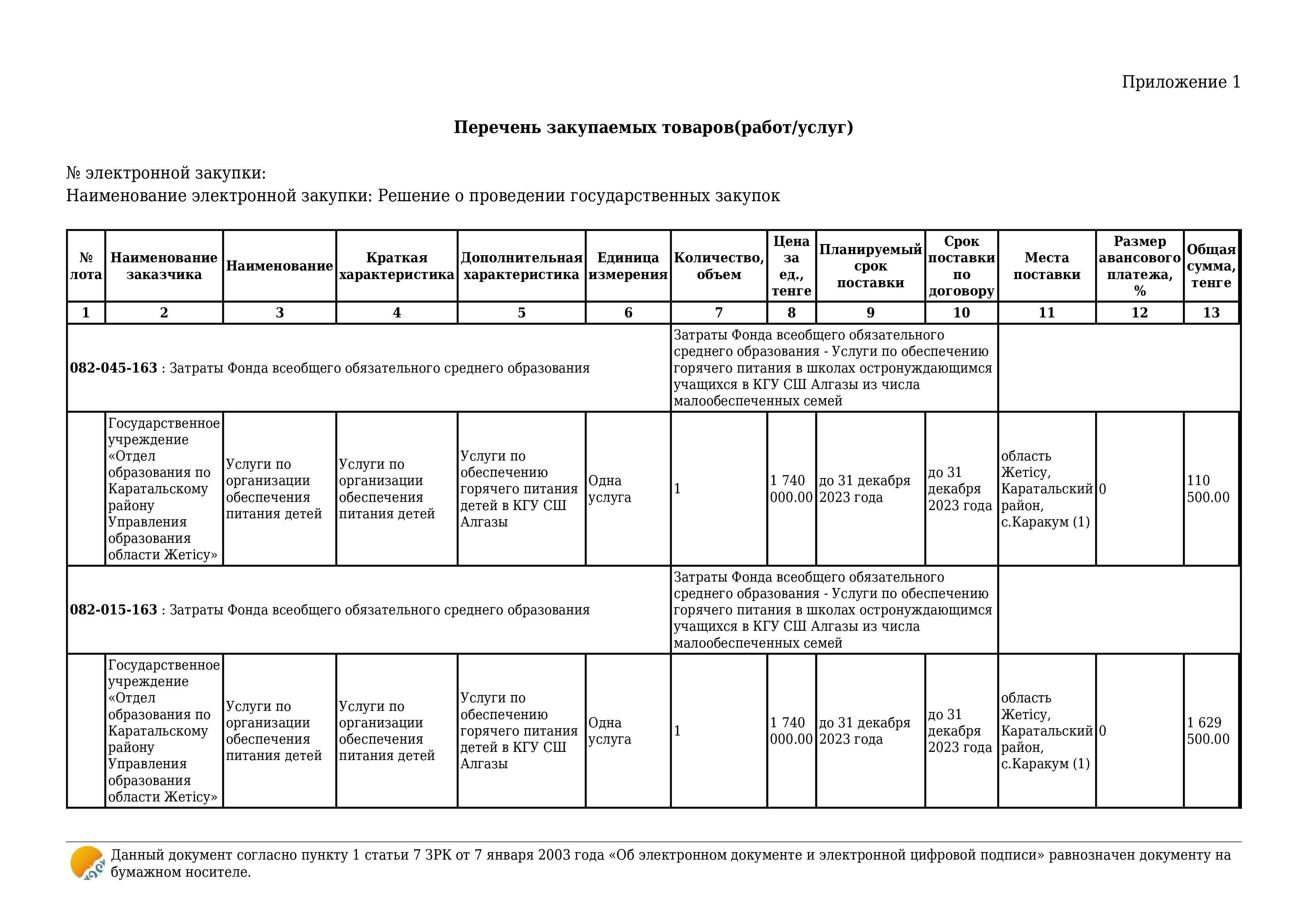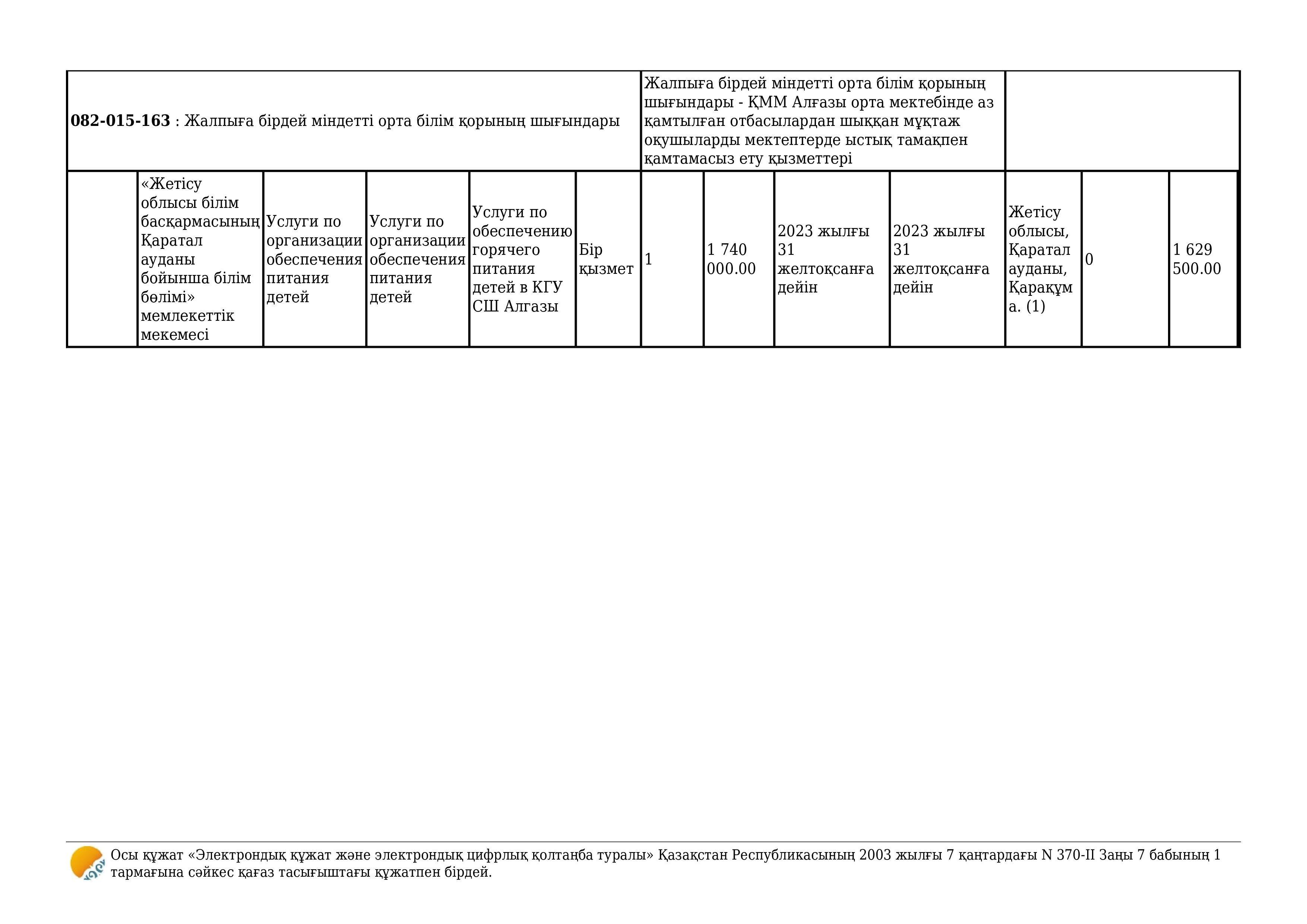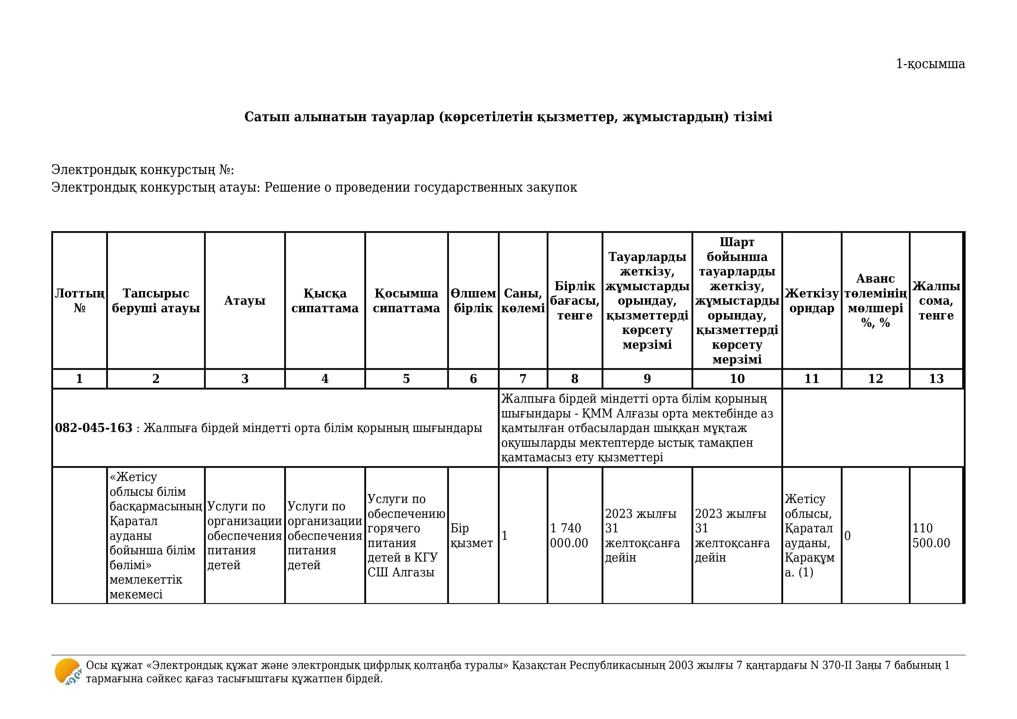 Көрсетілетін қызметтерді сатып алу туралы шартына қосымша келісім » Алғазы орта мектебі